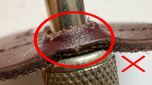 ※ R-Pad-GP18の上部ホールには直径6.5ミリ程度の物体まで挿入可能です。ただし6.3ミリ標準フォンプラグは、R-Pad-GP18が挿入できるものの、革の厚みでプラグがきちんと奥まで挿さらないため使用できません。